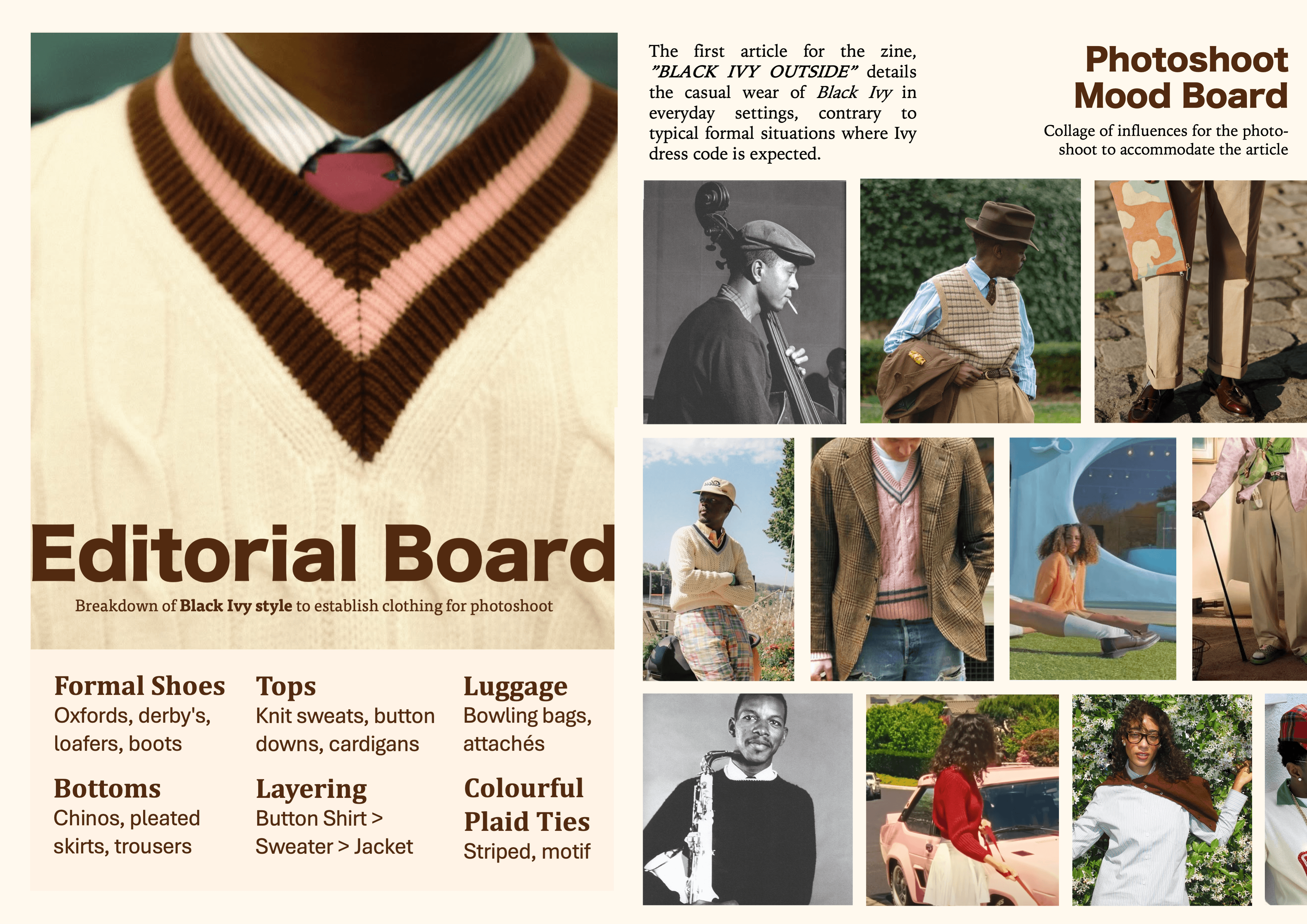 Mood Board and Attire breakdown of the Black Ivy Style, the subject of my magazines first editorial