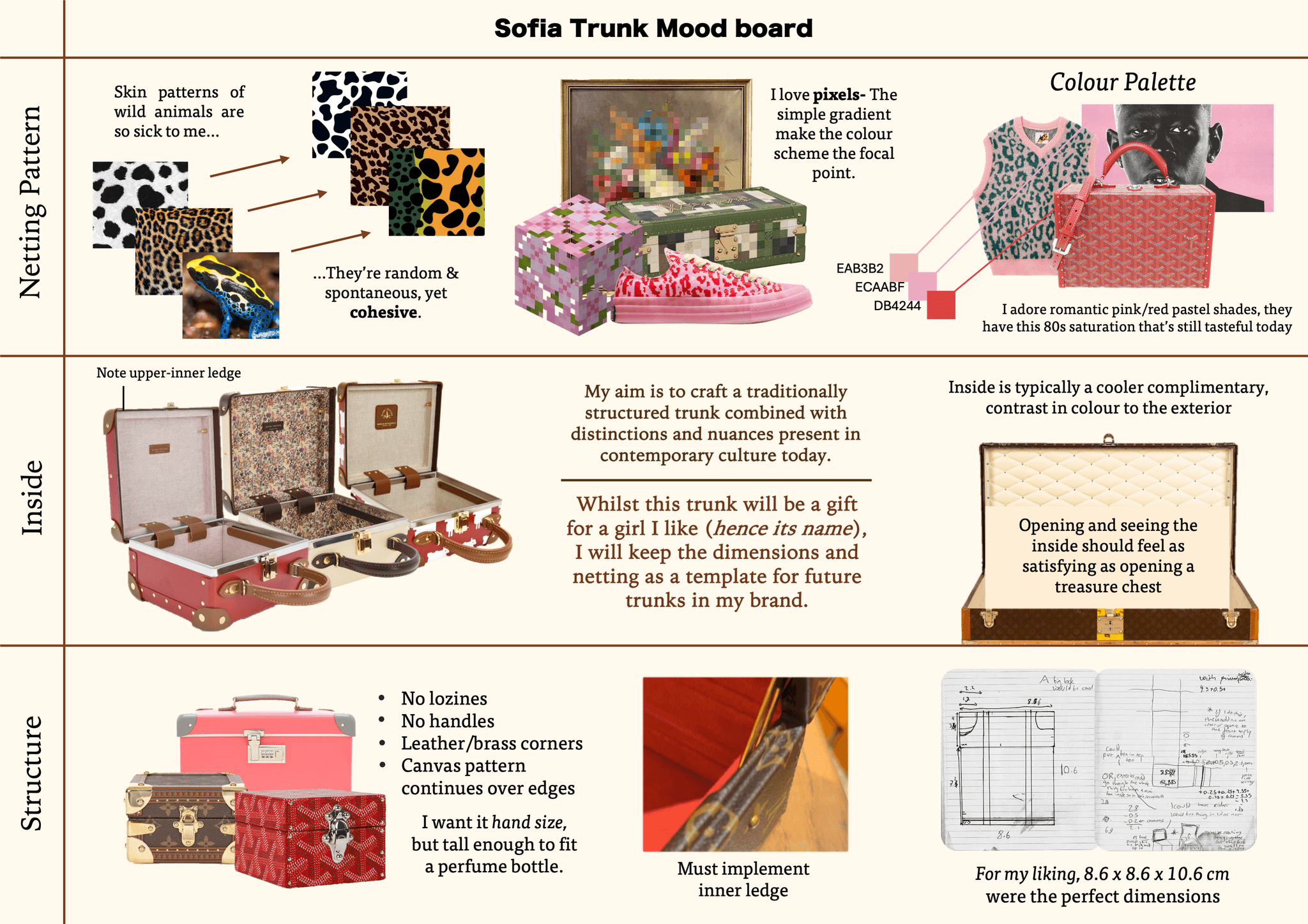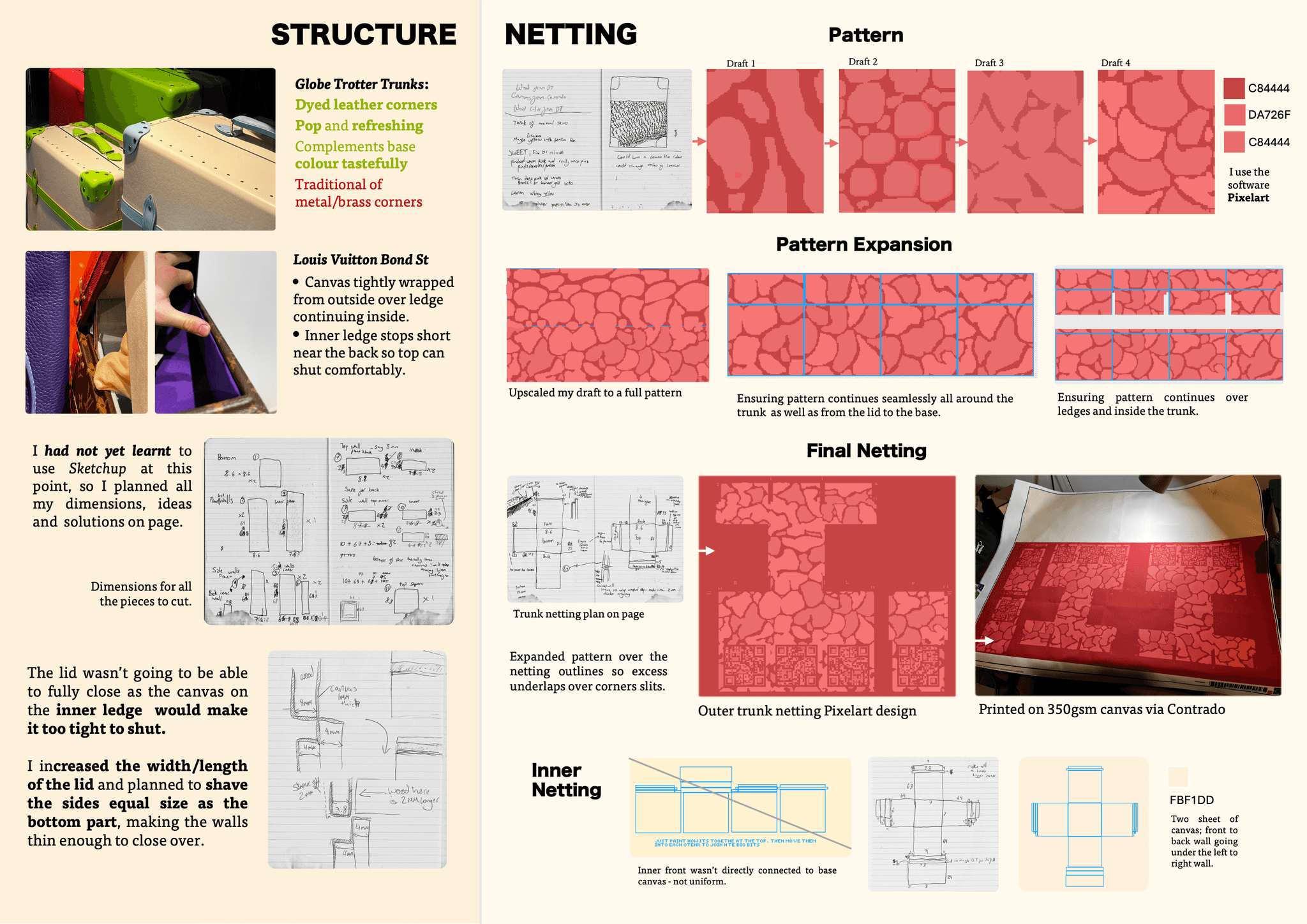 I broke down the 3 main design components that make up a trunk: Netting Pattern, Inside, Structure