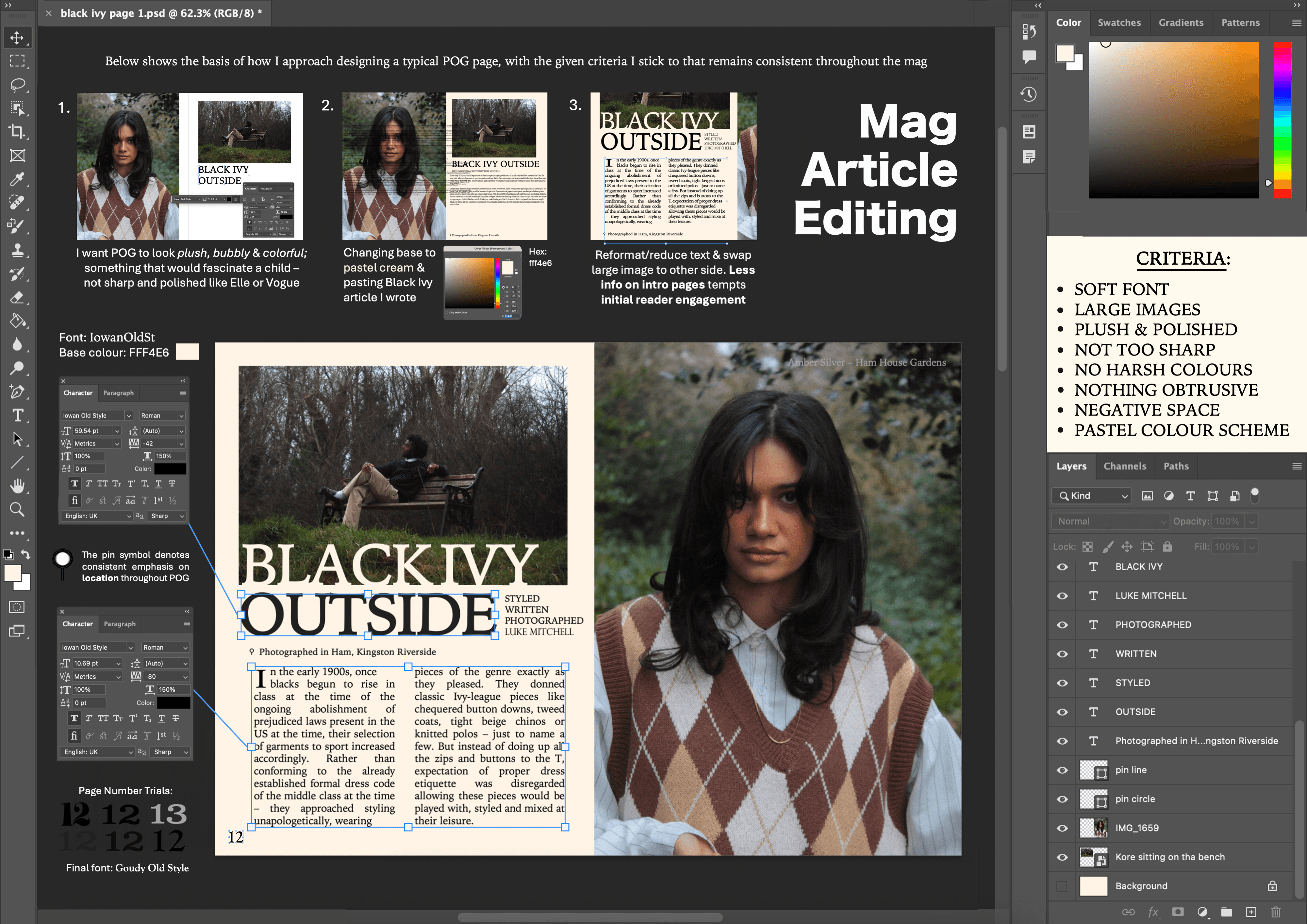 Editing first page of Black Ivy Outside Editorial in Photoshop